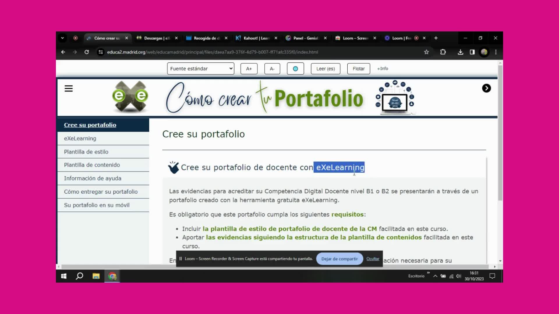 Vídeo corto donde se explica cómo crear un portafolio con la herramienta ExeLearning