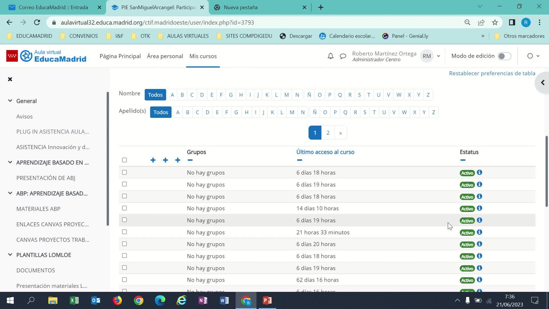 Y fíjate lo que ocurre ahora. Yo le doy aquí y te dice que el último acceso de este alumno ha sido 6 días y 18 horas.