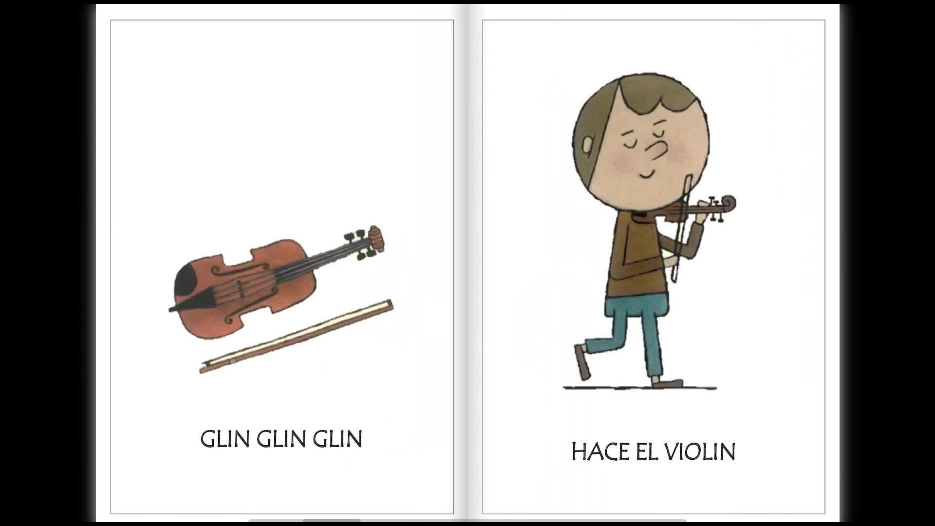 Violín, glin, glin, glin, haz el violín, pom, pom, pom, haz el tambor, turuleta, la trompeta,