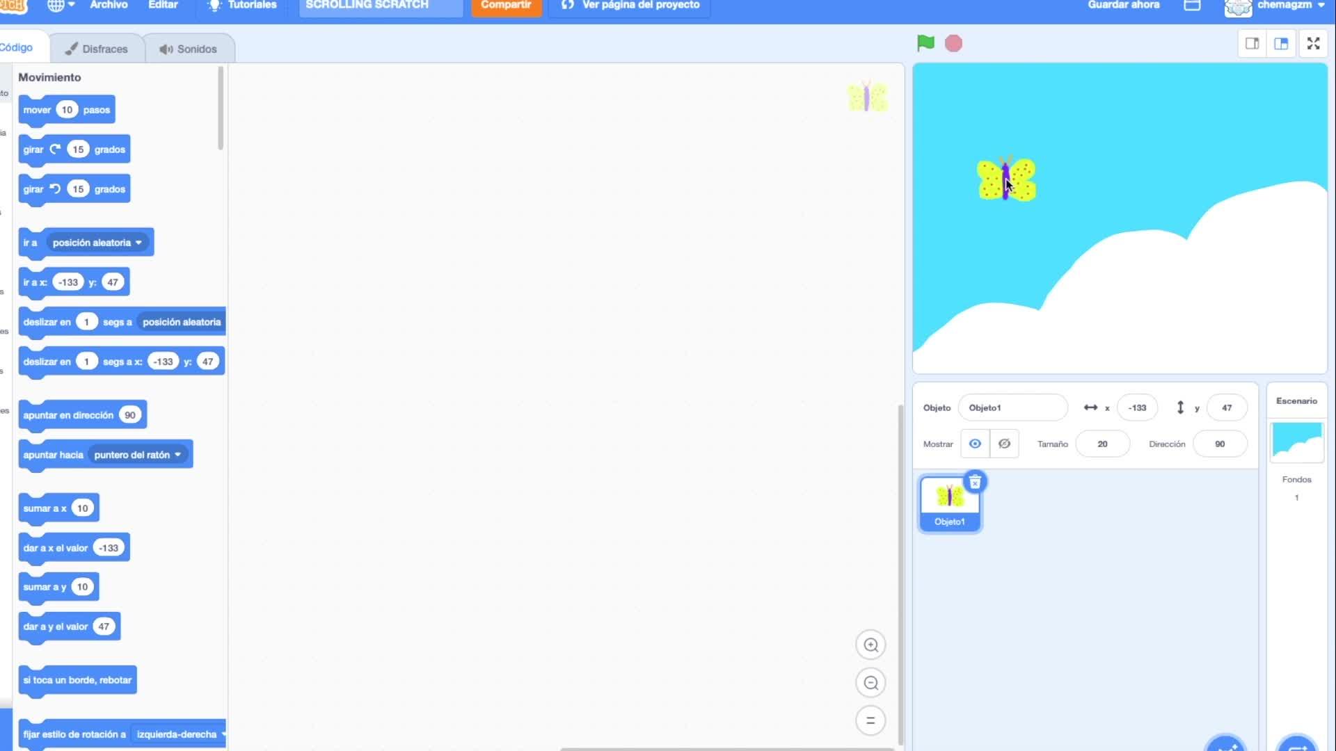 hemos dicho antes va a ser programar a esta mariposa el juego directamente lo que pasa
