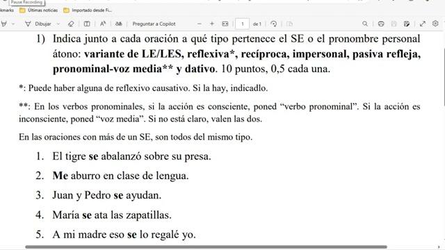María se ata las zapatillas, se ata las zapatillas a sí misma, esto sí que es reflexivo, ¿vale? Es una oración reflexiva, donde las zapatillas va a ser el complemento directo y el se es a quien se las ata, que es a sí misma y es el indirecto, ¿vale? Estas son las oraciones que hemos visto siempre.