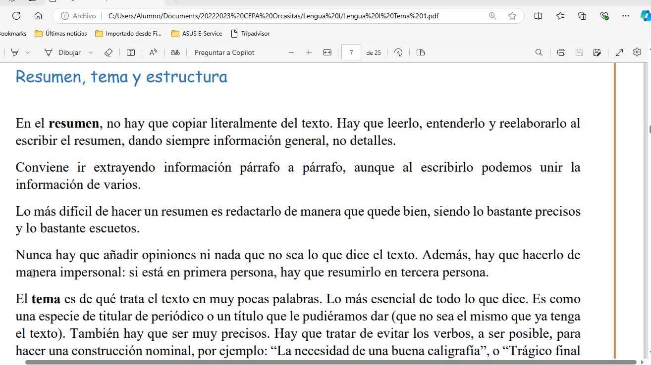 En el resumen, tal como tenemos en los apuntes, no hay que copiar literalmente del texto