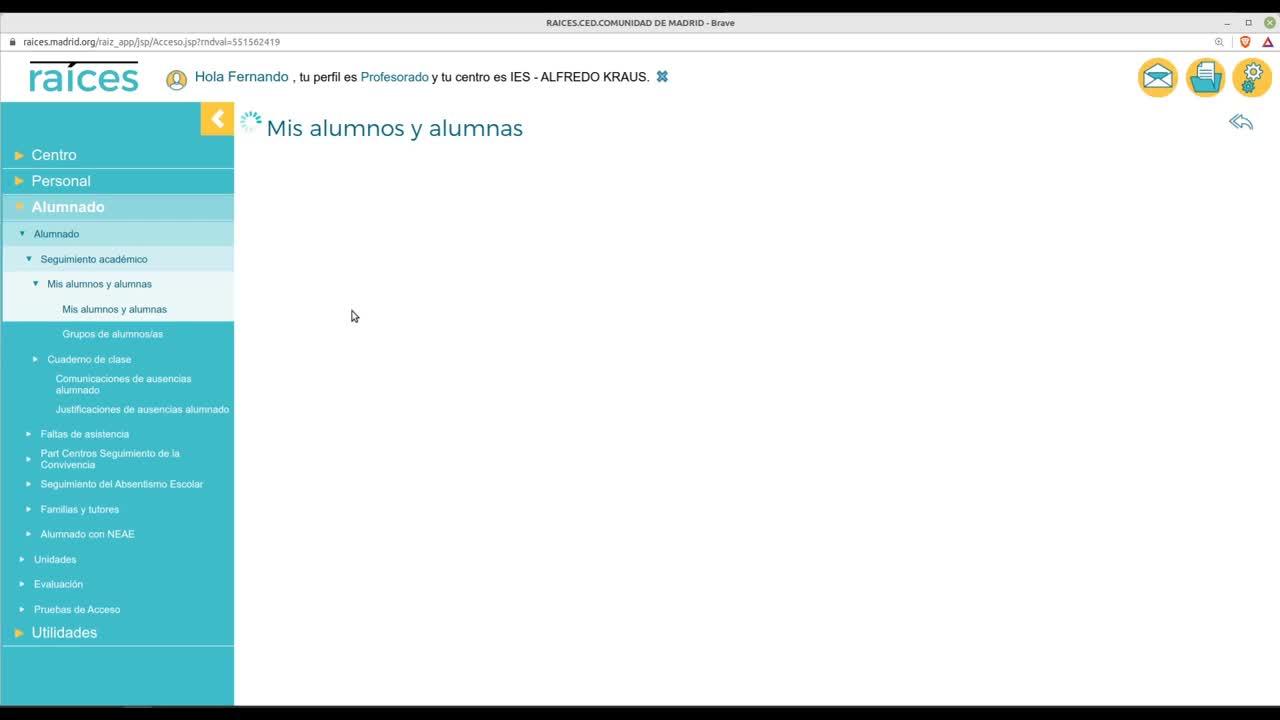 aquí al icono del disquete y finalmente nos iríamos a mis alumnos y alumnas. Aquí