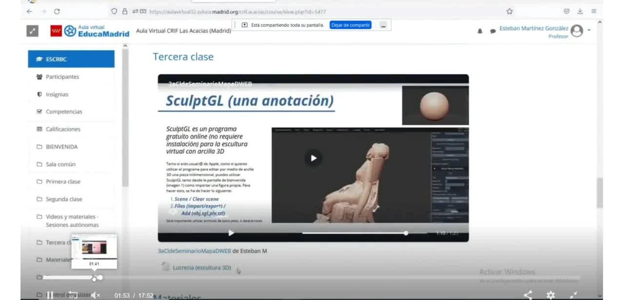 Si entramos en el aula virtual podemos siempre visitar un poco los materiales que tenemos, las presentaciones de las sesiones componente,