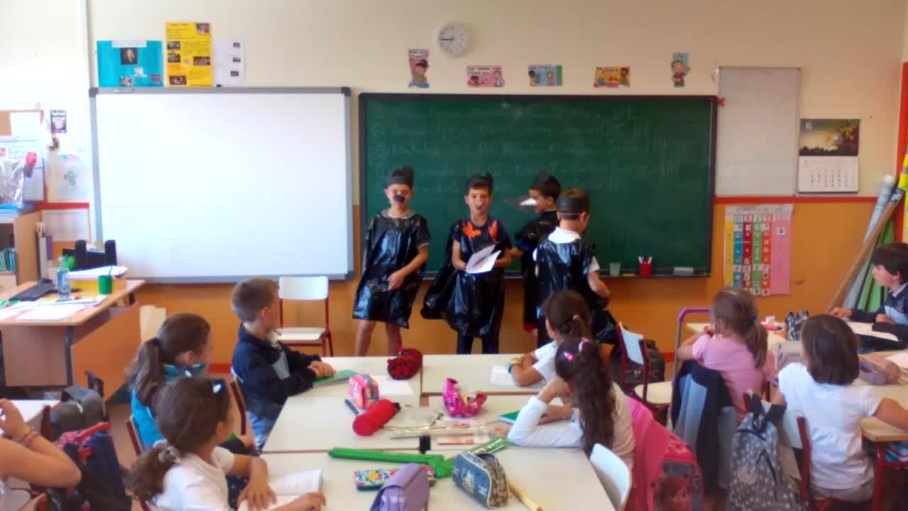 Alumnos de 3º de primaria se inventan cuentos y los dramatizan en clase.
