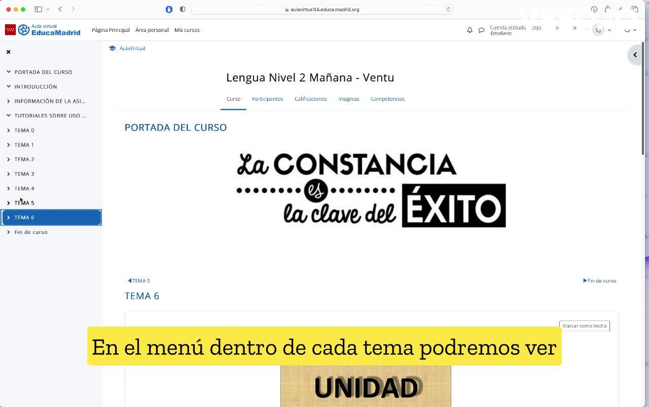 O si accedemos al propio tema, podremos ver aquí que podemos marcar cómo hecha esta actividad.