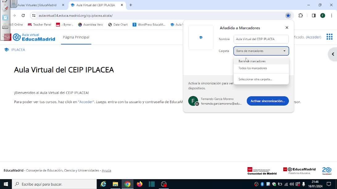 aquí y nos lleva ya al aula virtual del colegio y placea. Si no queremos repetir este paso