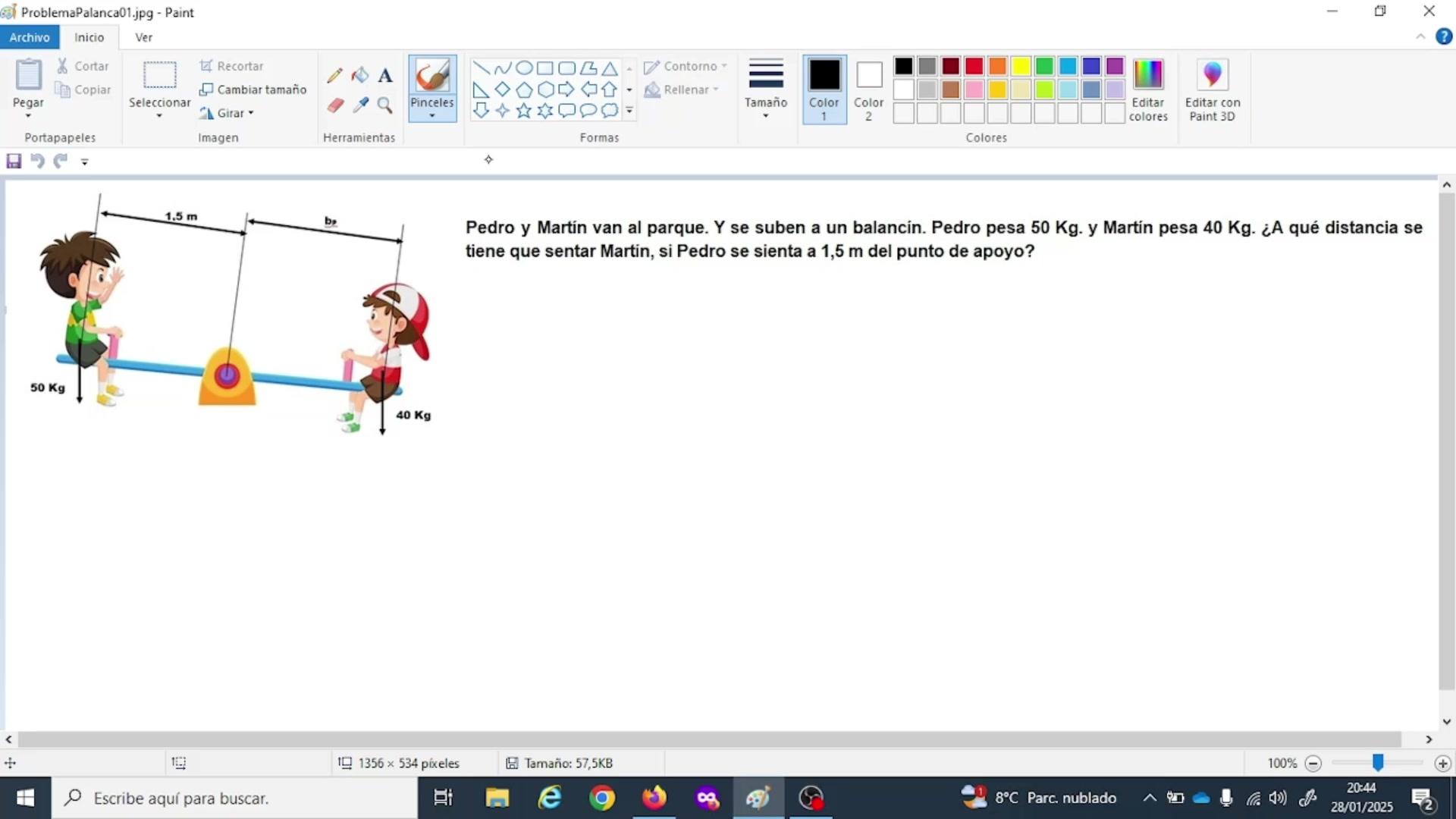 a leer el enunciado. Pedro y Martín van al parque y se suben a un balancín. Pedro pesa