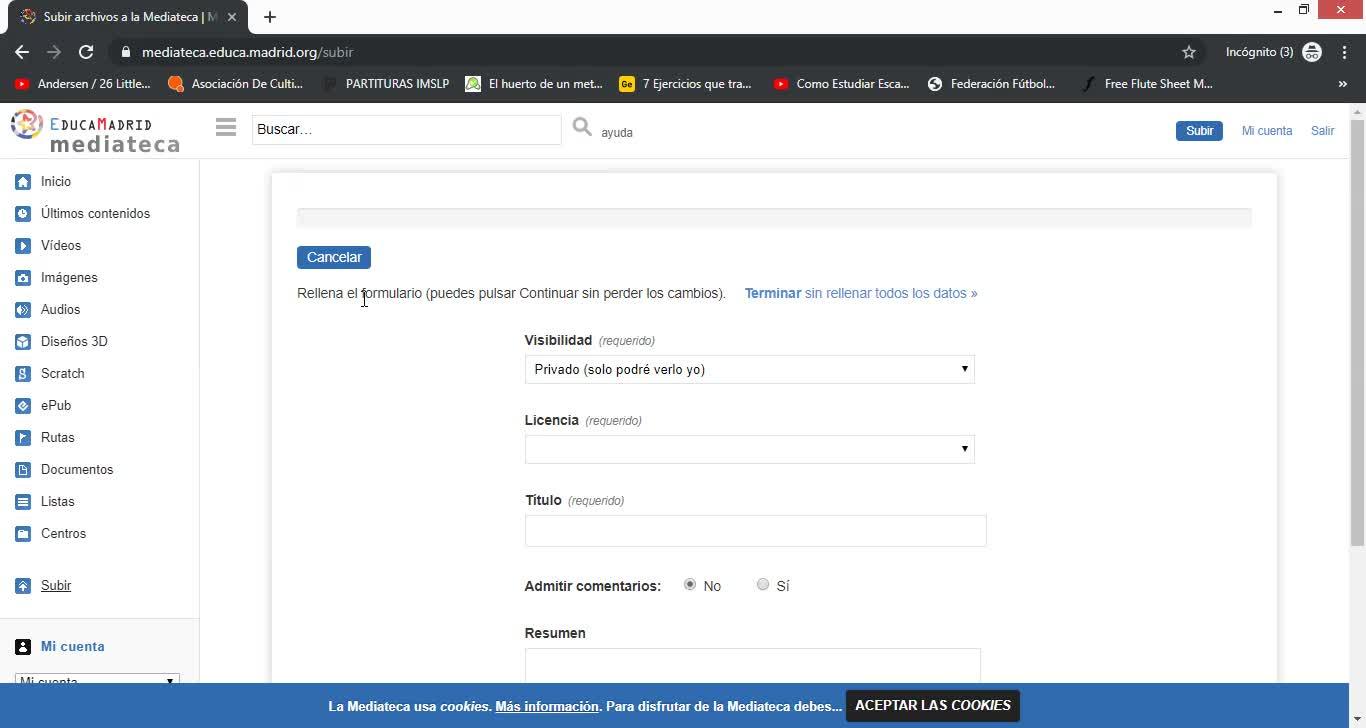 Por último, nos queda subir un archivo, que sea de vídeo.