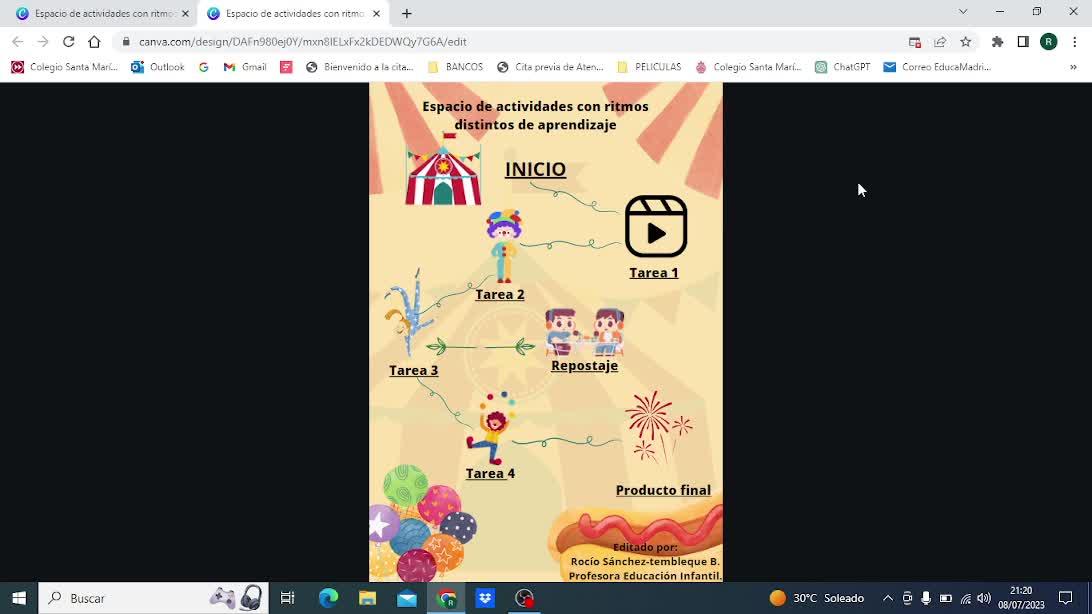He creado un documento en Canva con espacio de actividades con distintos ritmos de aprendizaje,