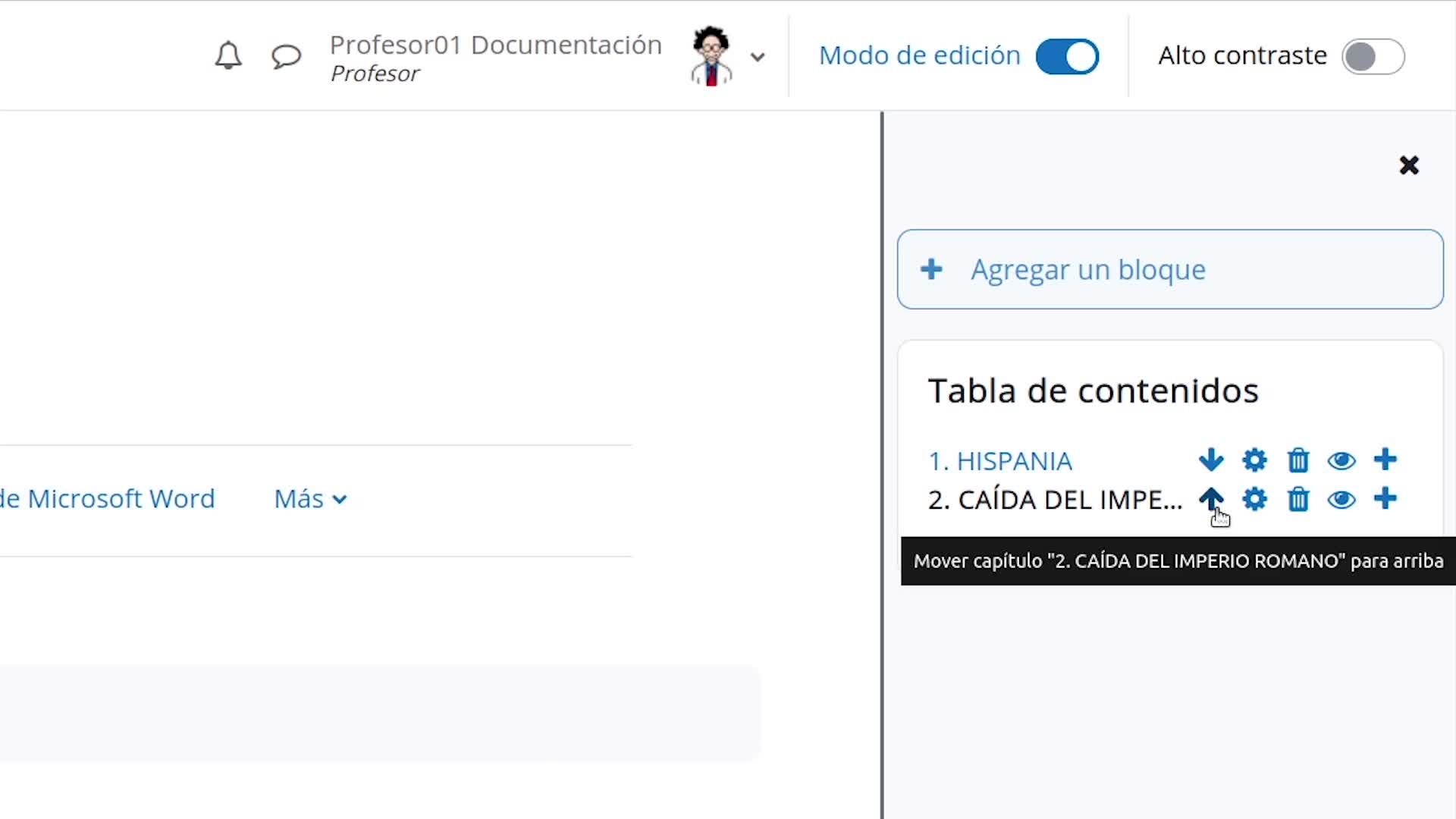 También podemos reordenar los capítulos con las flechas de mover hacia arriba o hacia abajo.