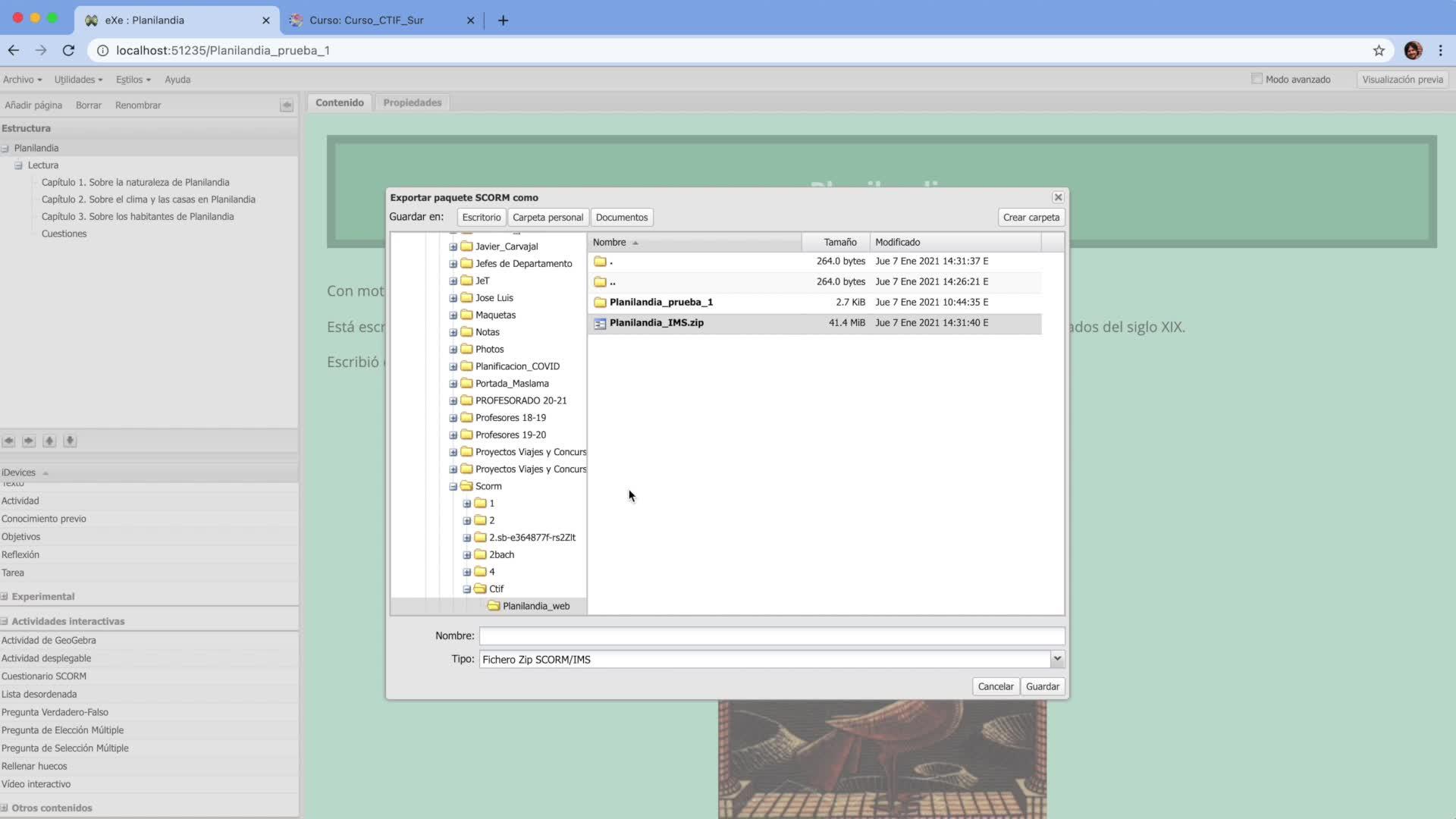 Exelearning. Exportar a SCORM