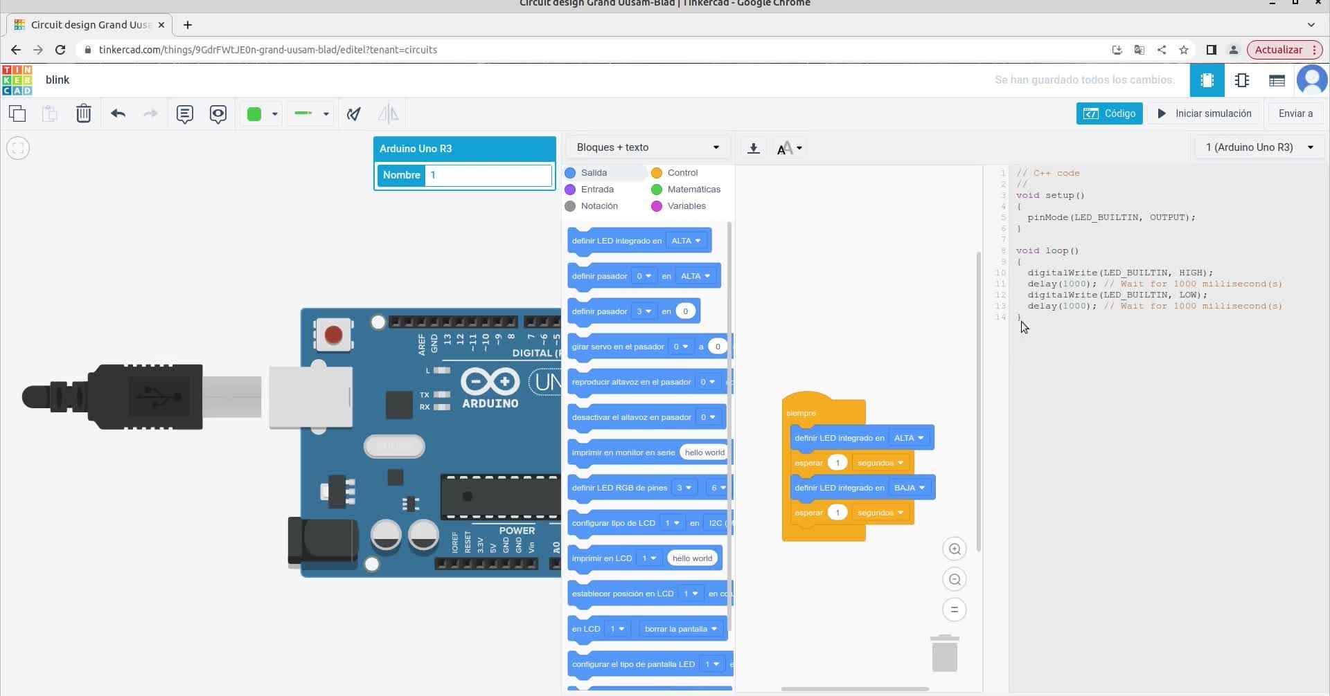 Blink arduino con Tinkercad - Contenido educativo