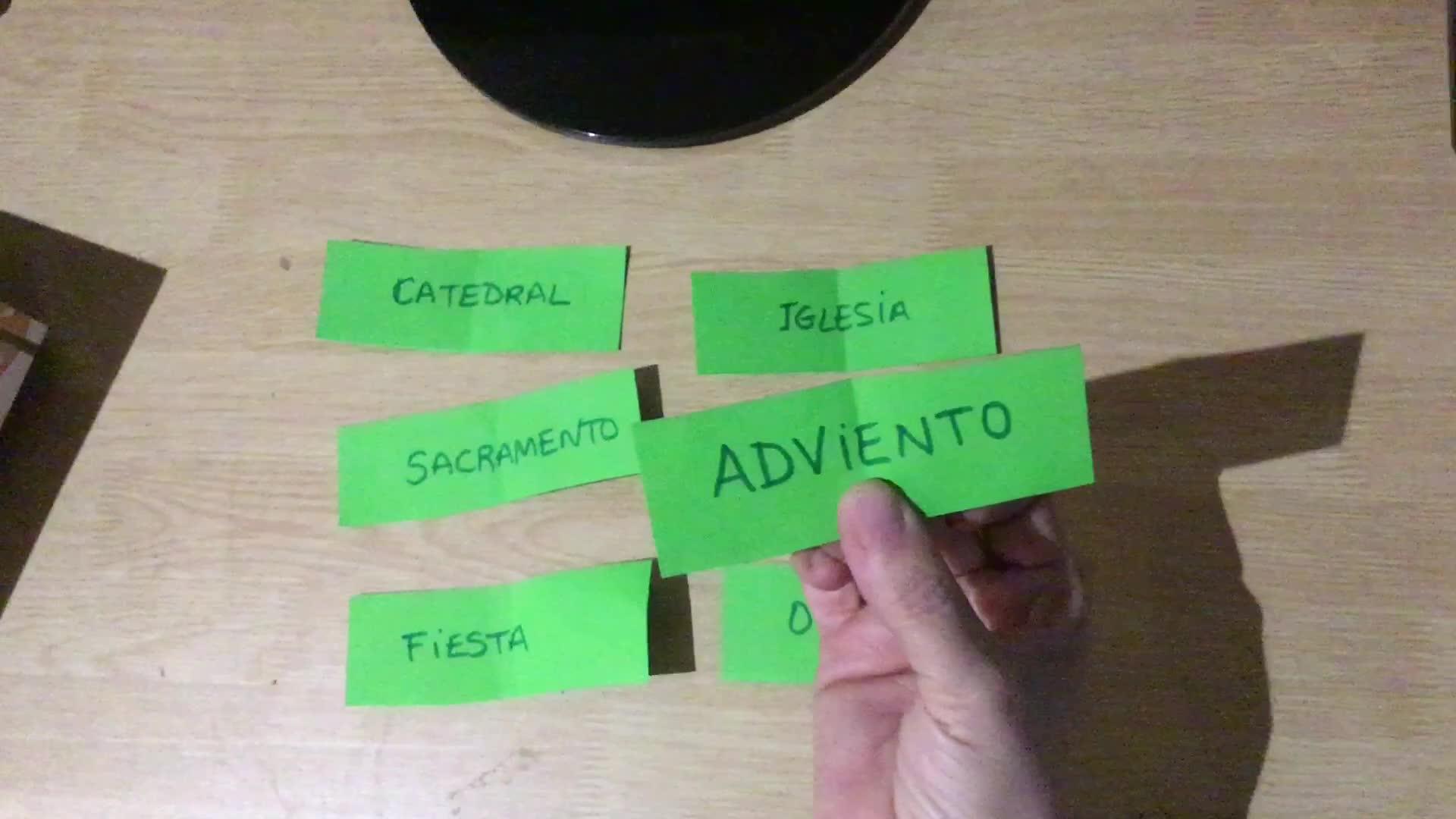 La palabra iglesia, las doblamos por la mitad y las metemos todas en una caja.