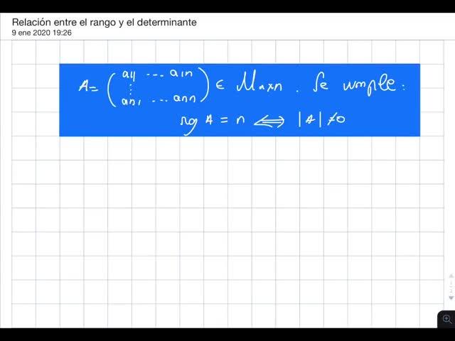 Relación entre el rango de una matriz cuadrada y su determinante - Contenido educativo