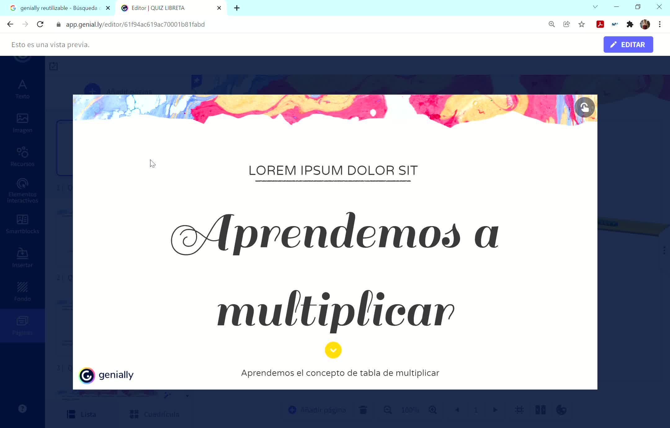 Con este juego que he creado y con este vídeo que estoy haciendo, lo que pretendo es que los niños, los alumnos, aprendan el concepto de multiplicar.