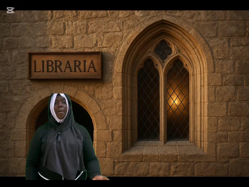 Spot en el que los monjes copistas medievales anuncian la renovación de su biblioteca y sus servicios