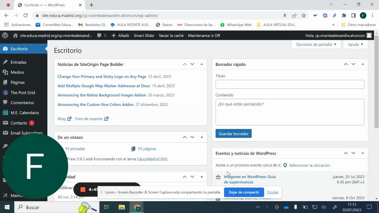pero sí que me gustaría con este vídeo mostrar que he sido la persona responsable en los últimos cuatro años de la gestión tanto del espacio web como de las redes sociales del centro.