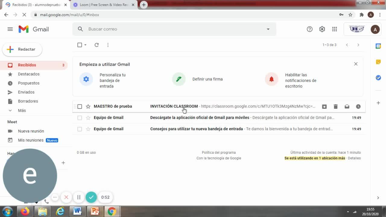 Aquí os llegará una invitación para acceder a Classroom.