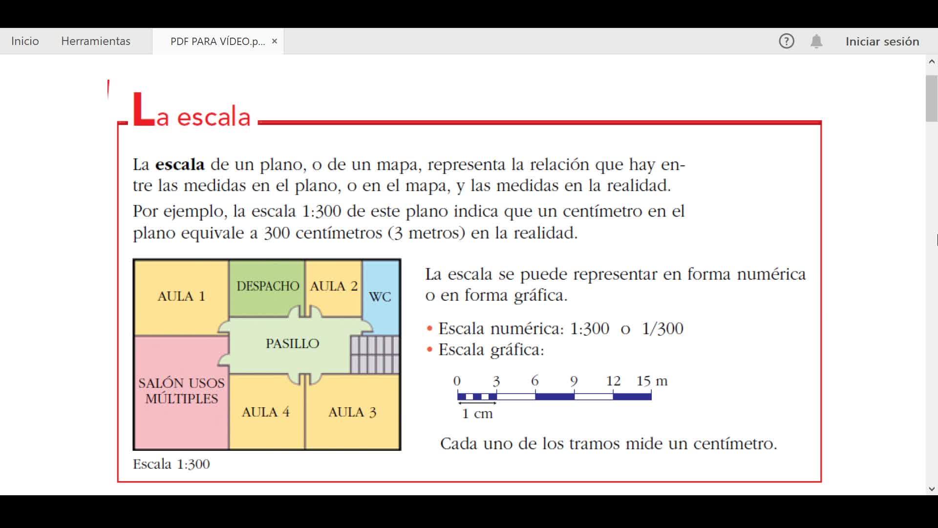 Así que vamos a quedarnos con que en esta escala 1-300, un centímetro en el plano son 300 centímetros en la realidad.