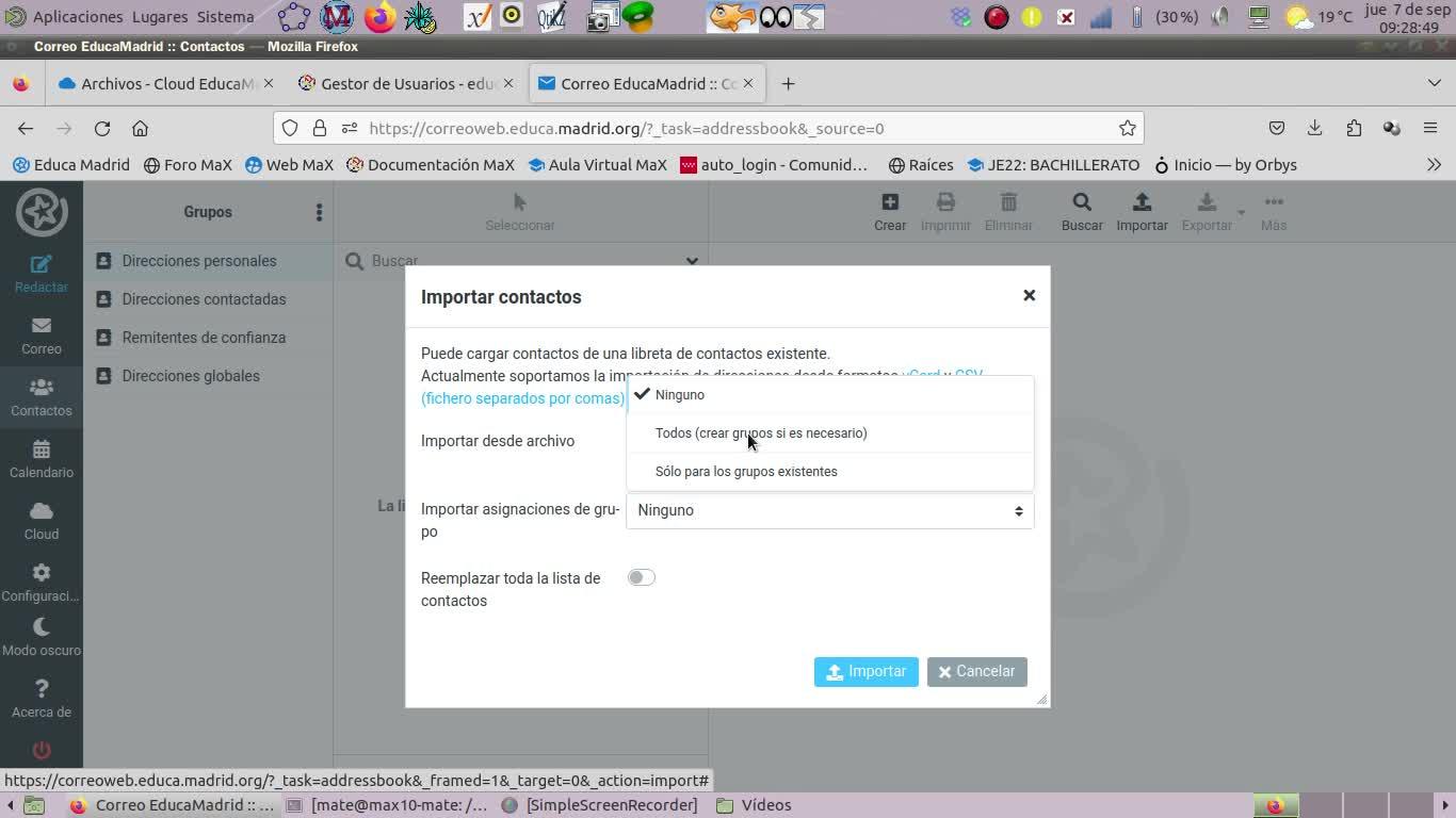 Importar lista de contactos correo EducaMadrid