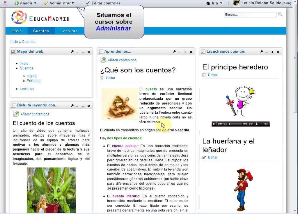 Diseñador web: Pestaña contenidos