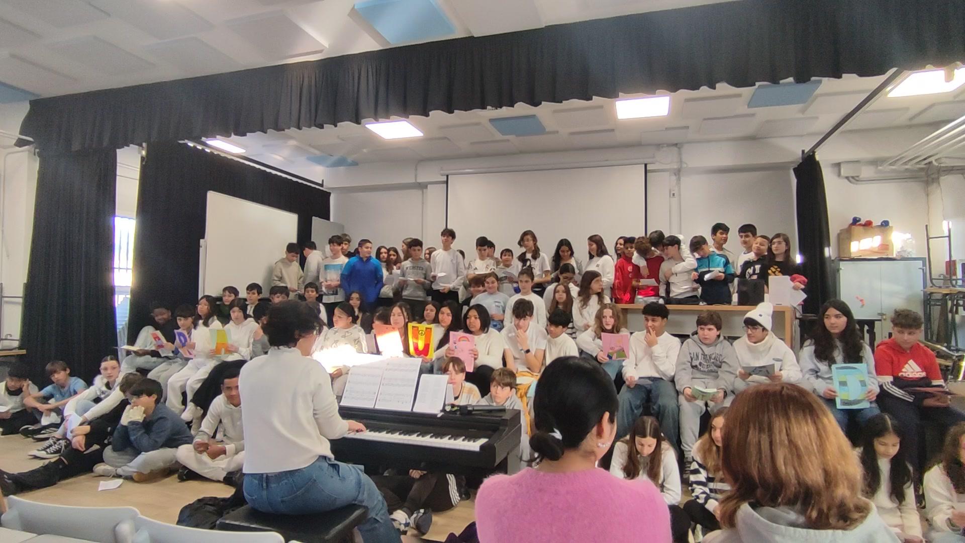 Gracias a la jefa del Dpt. de Música, Ester Majada, la comisión de convivencia interna del centro, encabezada por Tania y Cristina, el Dpt. de Dibujo y el alumnado de 1º de ESO, el viernes, 30 de enero, se ha celebrado el Día Escolar de la Paz.