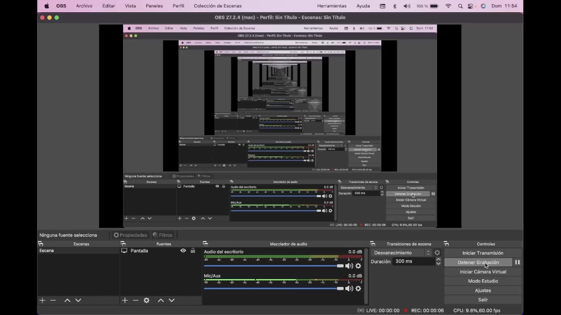 hacer la grabación de la pantalla estoy utilizando el programa OBS. Este programa