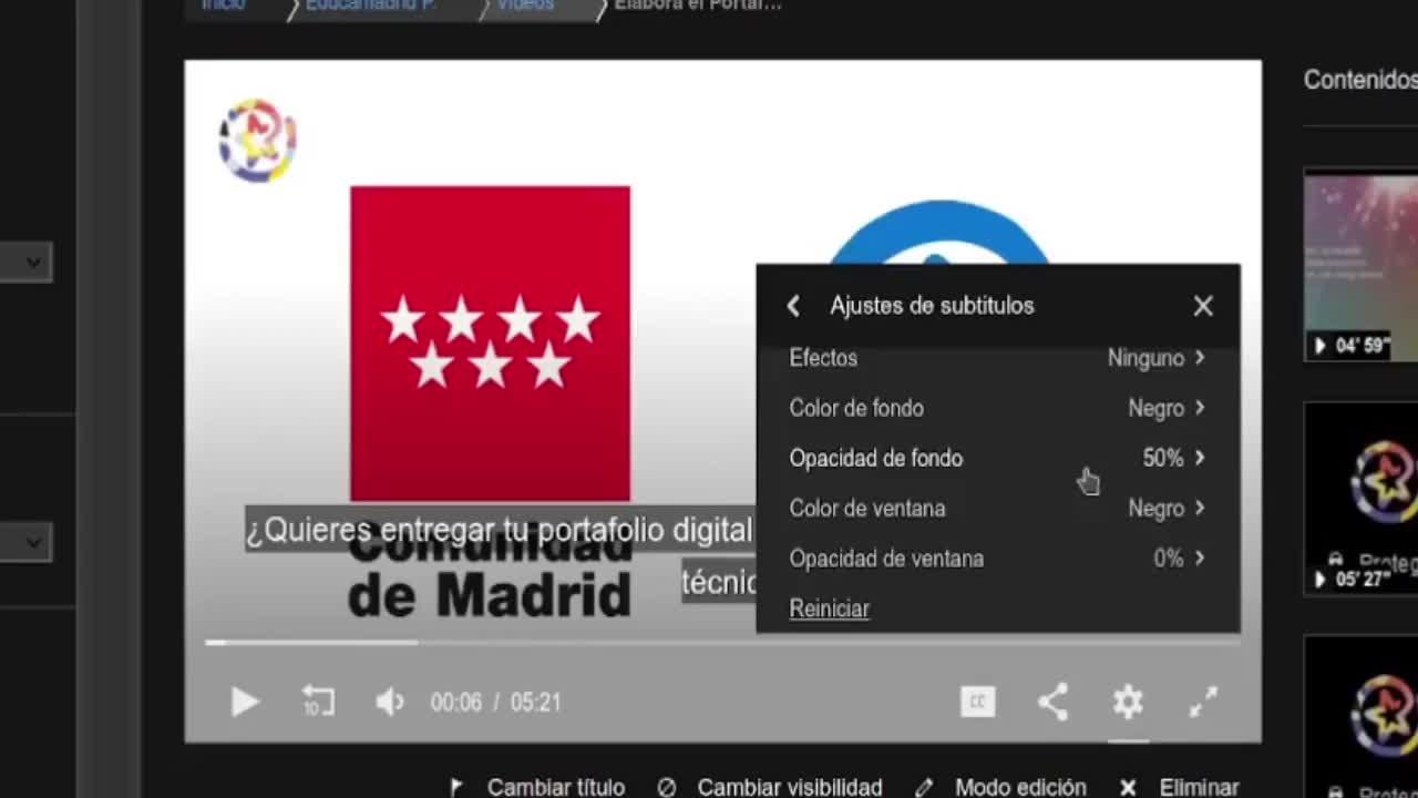 de EducaMadrid, va a la página del vídeo y activa el modo edición.