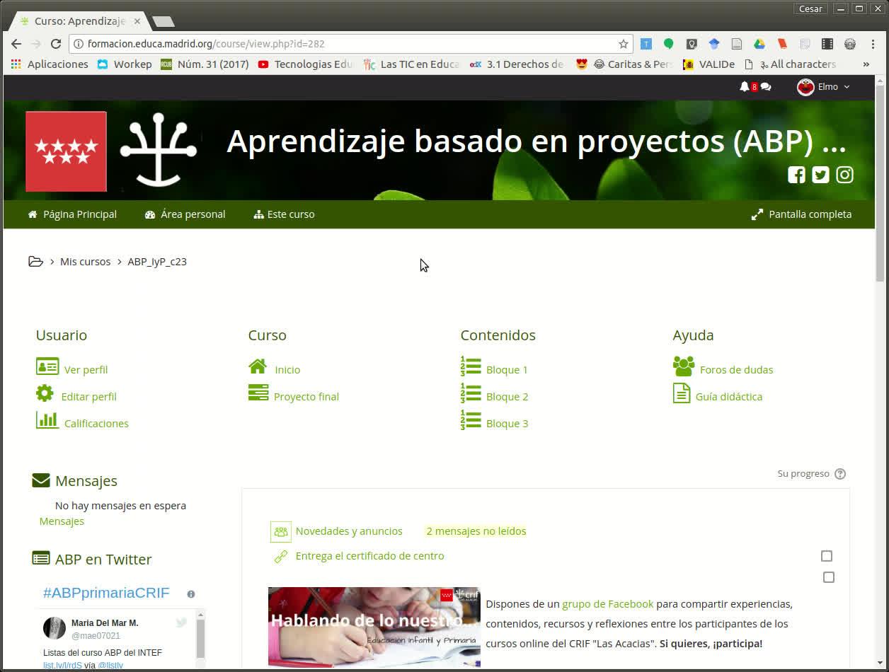 Si queremos volver a la página principal del curso, vamos a Inicio o también a través de este enlace que suele estar activo en cualquier parte de la página.