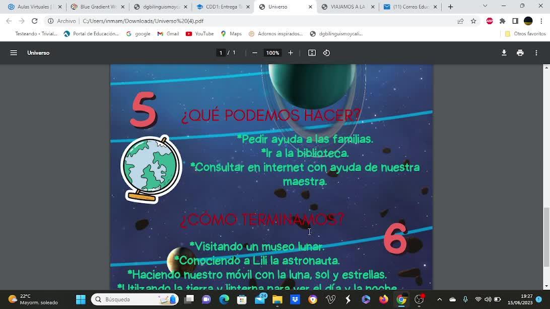 que está colocada las instrucciones que llevan por título ¿Quieres pasear por el universo?