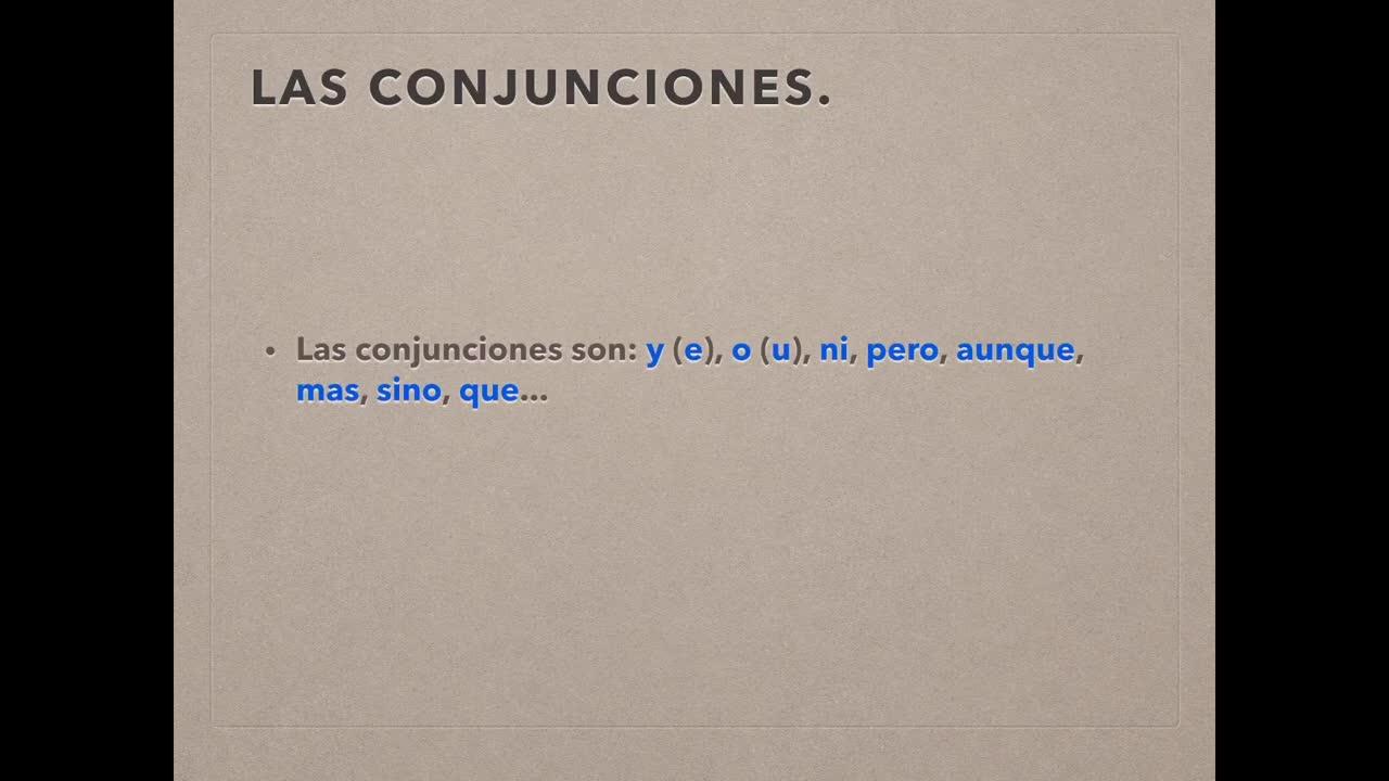 Las conjunciones unen palabras que están al mismo nivel y realizan la misma función.