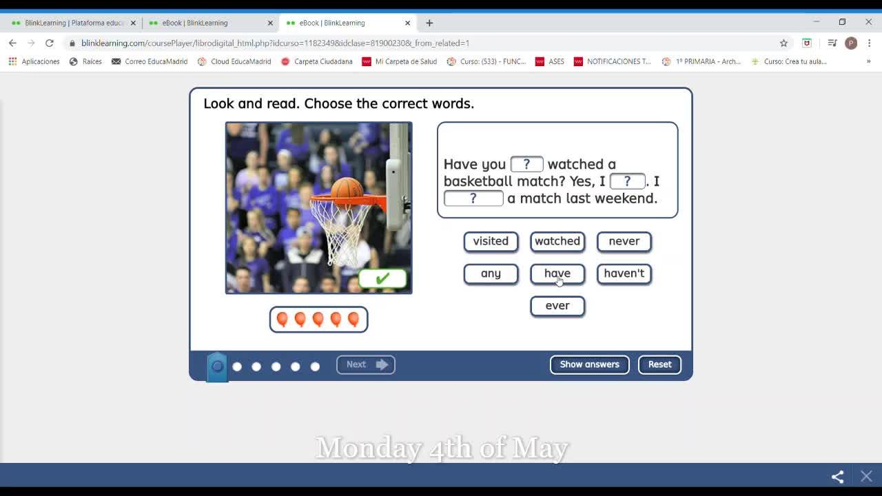 hecho en el activity book yo solamente voy a verlo online pero pero tenéis que
