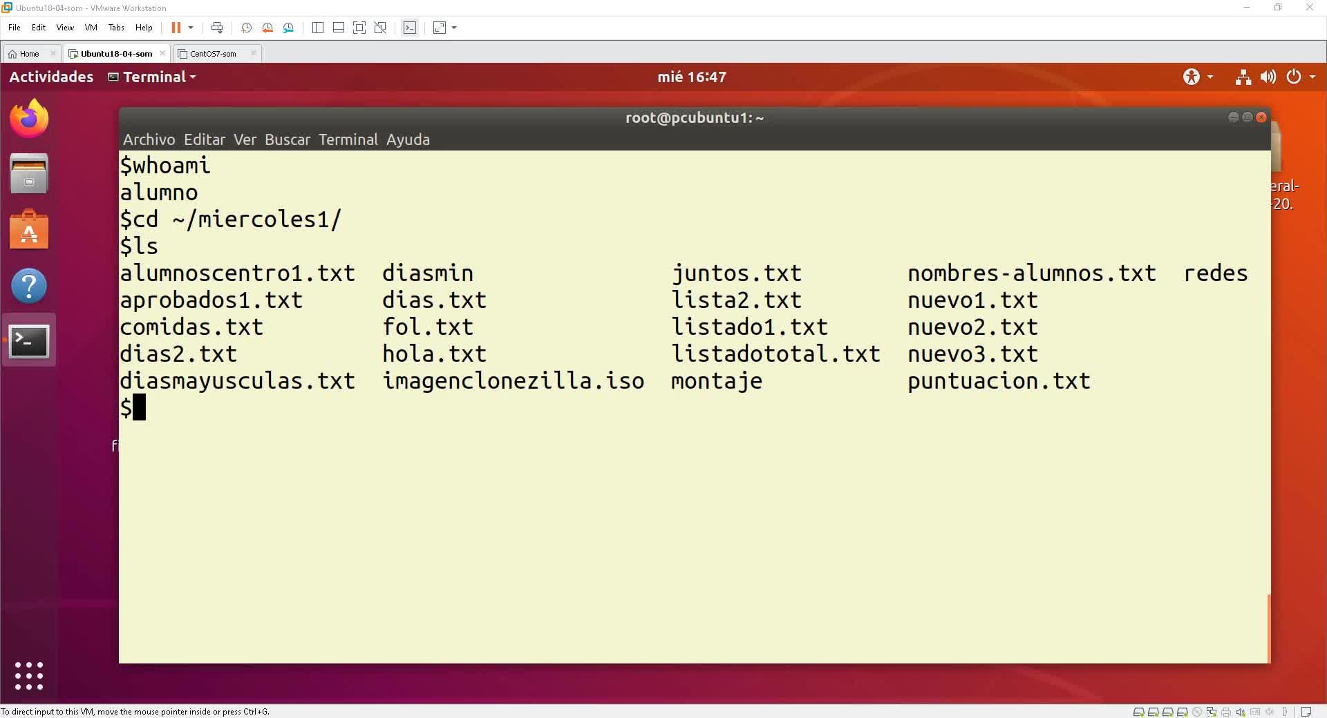 aquí el directorio que en el que estoy que es miércoles contiene una lista de ficheros pues