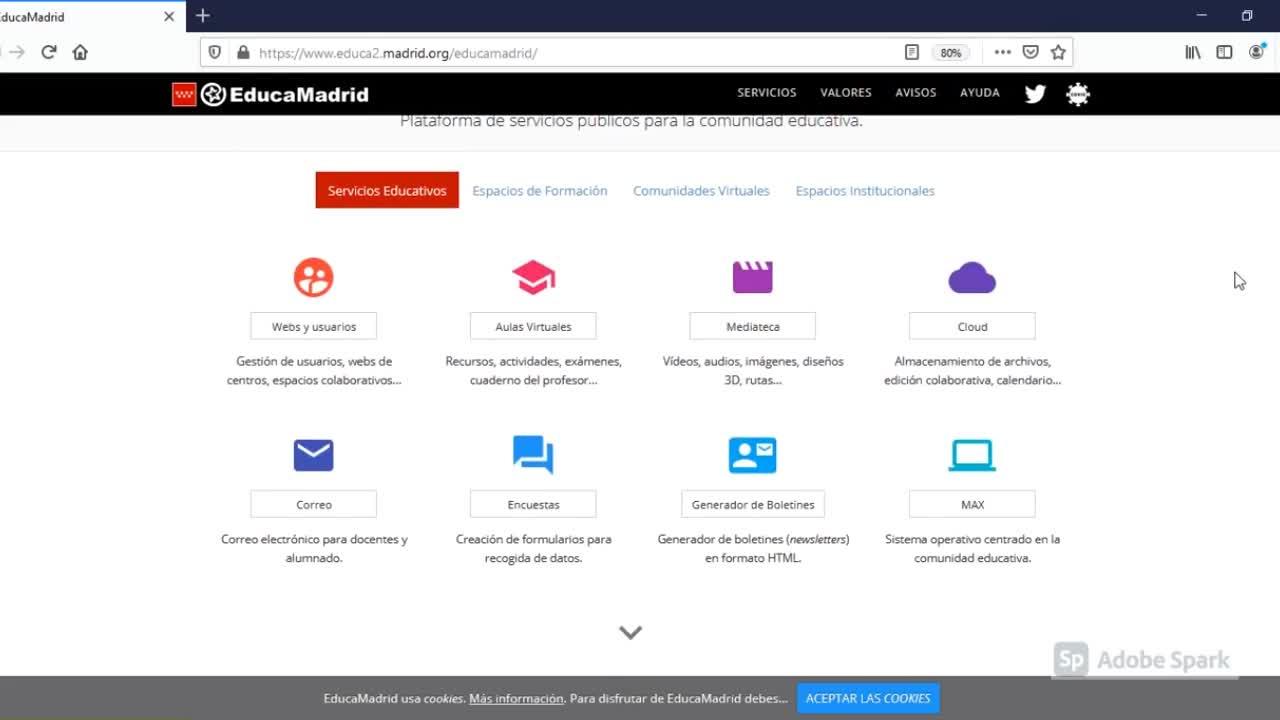 En este caso vamos a centrar en este vídeo en Web y Usuarios, Cloud y Correo de EducaMadrid.