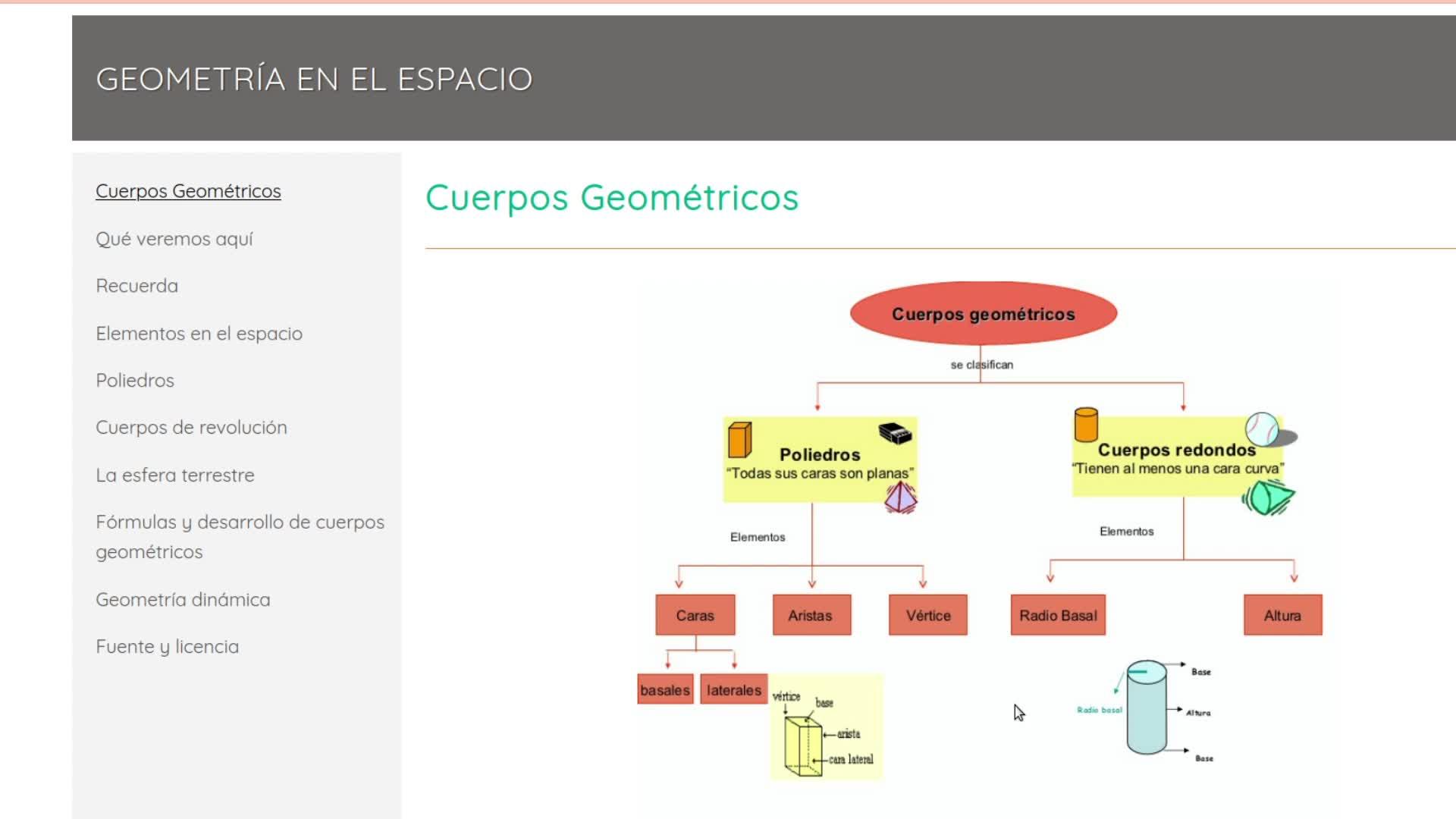 de los cuerpos geométricos y volúmenes con actividades interactivas. Y con esto quedaría