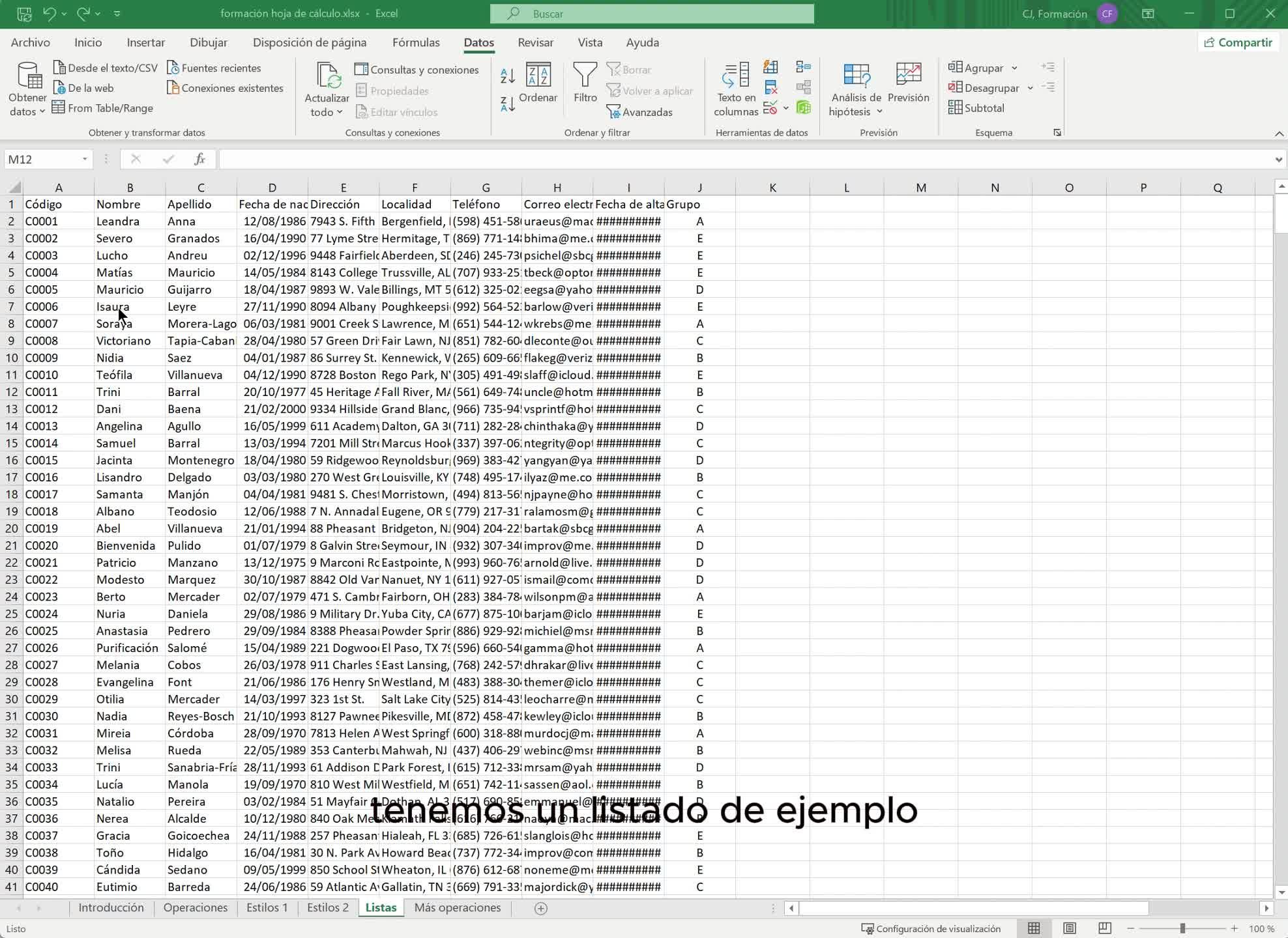 Tenemos un listado de ejemplo y lo primero que podemos hacer con él es darle formato, como hemos visto en vídeos anteriores,