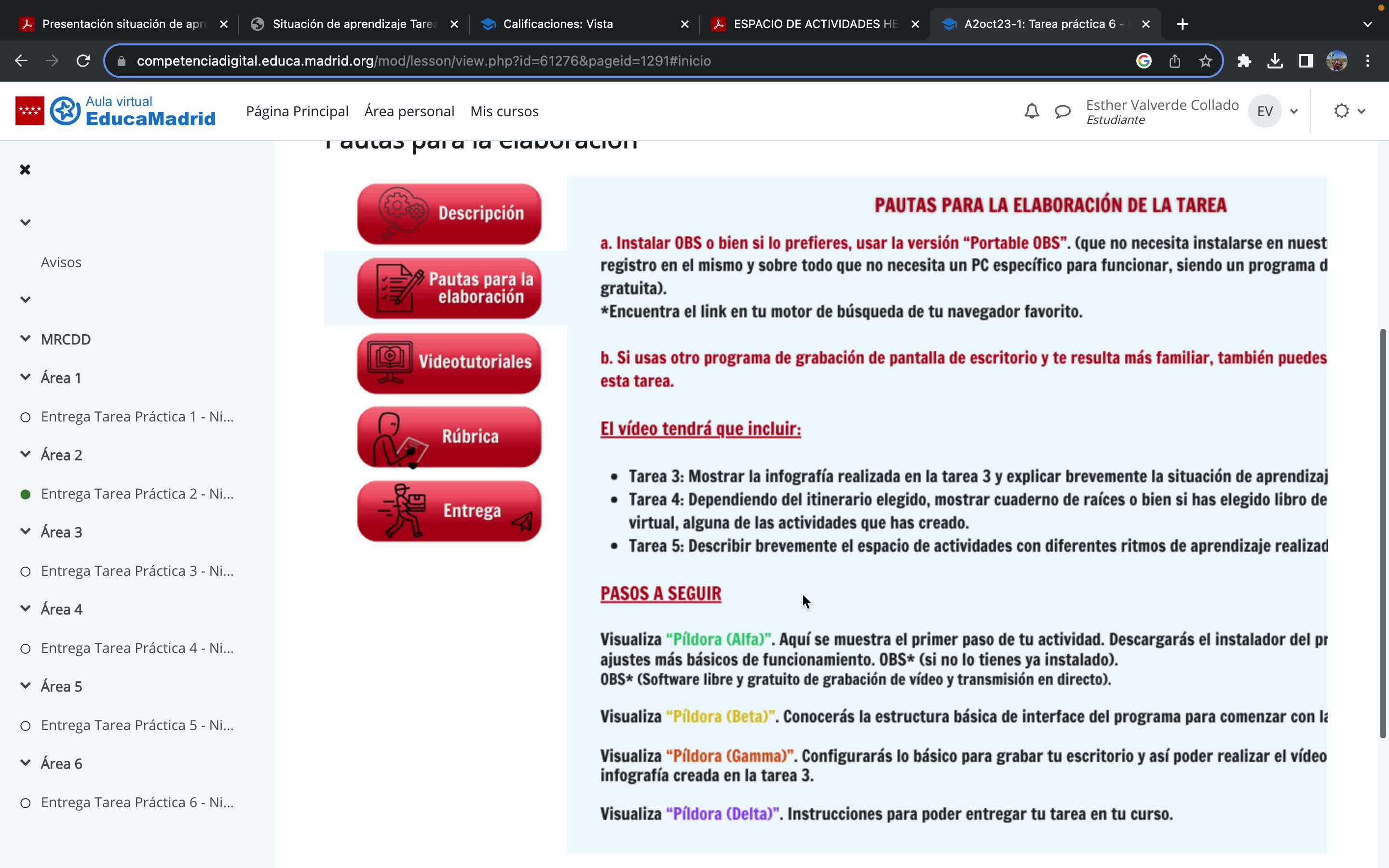 Y por último, en cuanto al área 5, la tarea número 5,