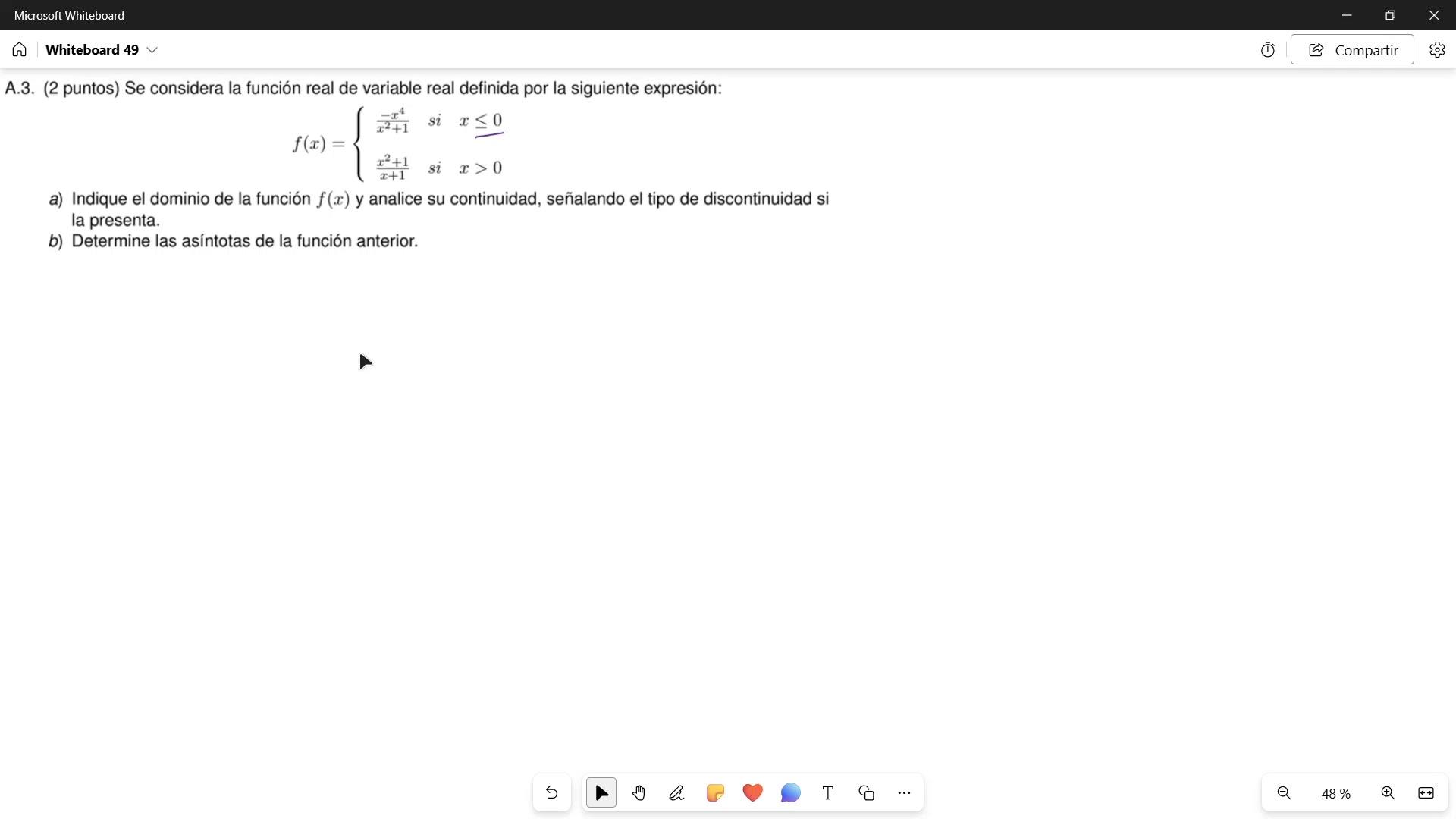 Me dan una función definida a trozos y en el apartado A me piden indicar el dominio
