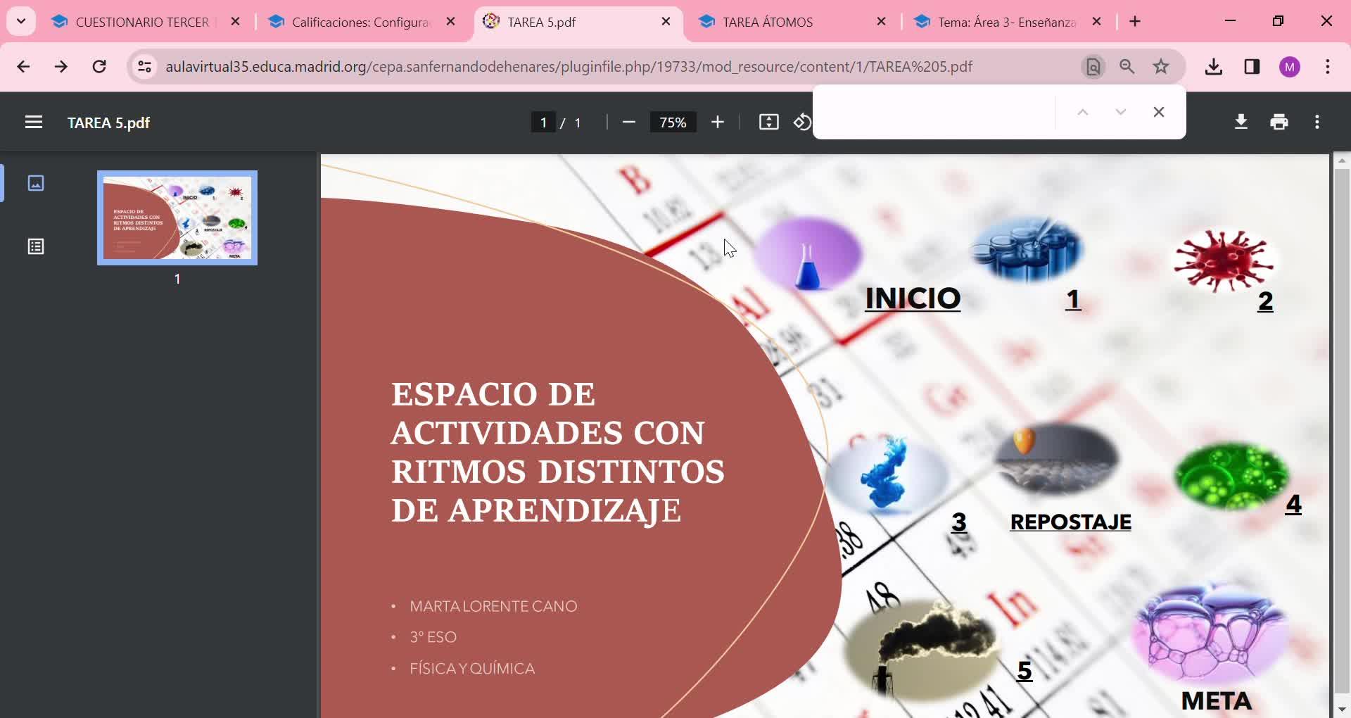 Respecto a las calificaciones, también he incluido en la segunda evaluación otro ejercicio de materia muy parecido a la tarea de los átomos y un cuestionario del tercer trimestre.