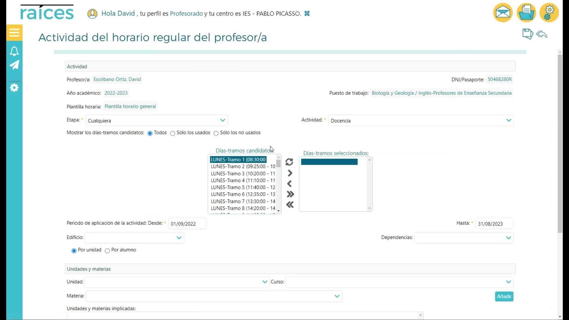 En este vídeo vamos a ver las posibilidades que nos da Raíces respecto a nuestro horario personal.