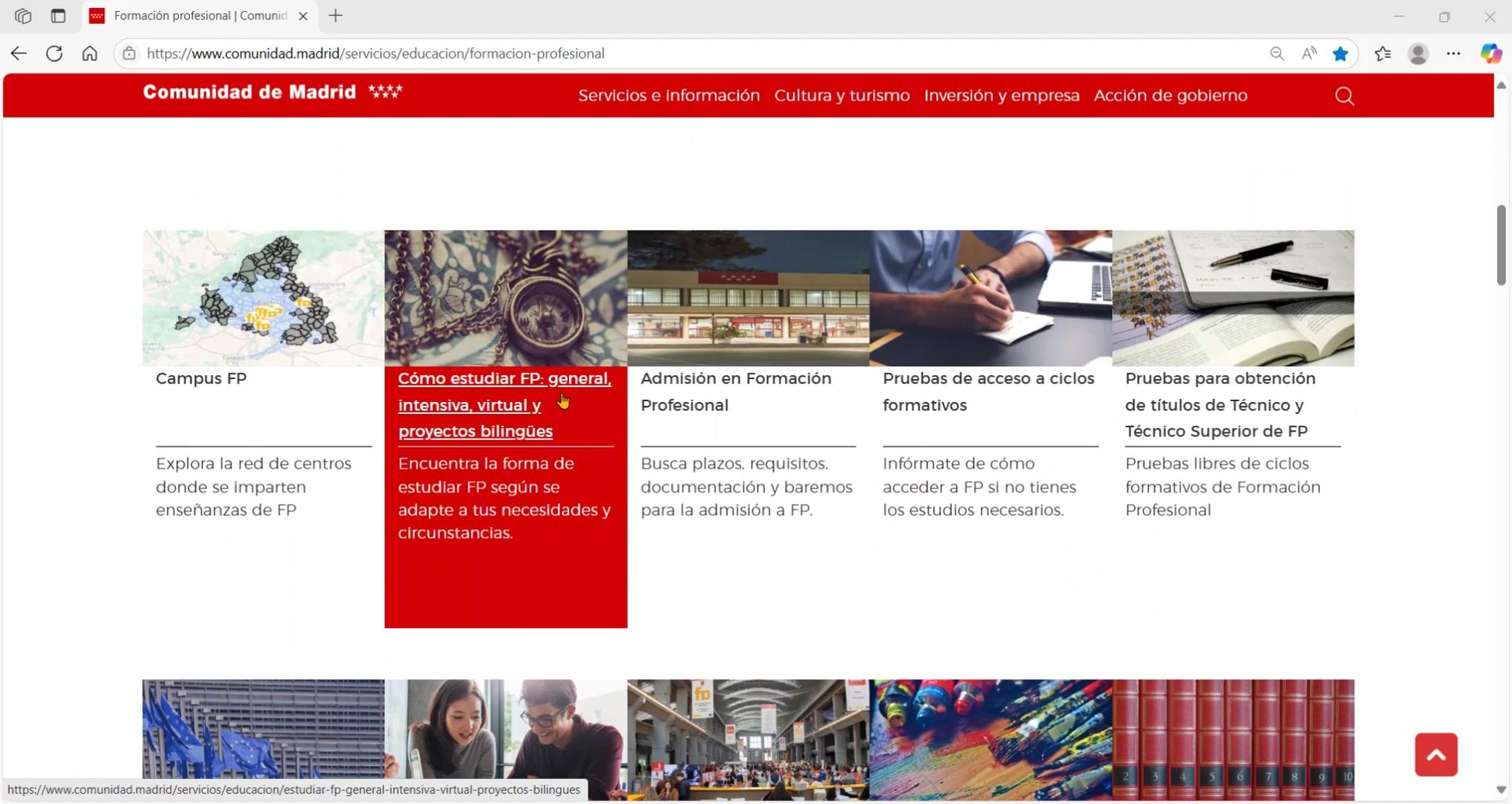 En esta página de la Comunidad de Madrid podrás encontrar toda la información sobre los ciclos formativos disponibles según el grado que quieras hacer, básico, medio o superior, además de los cursos de especialización.