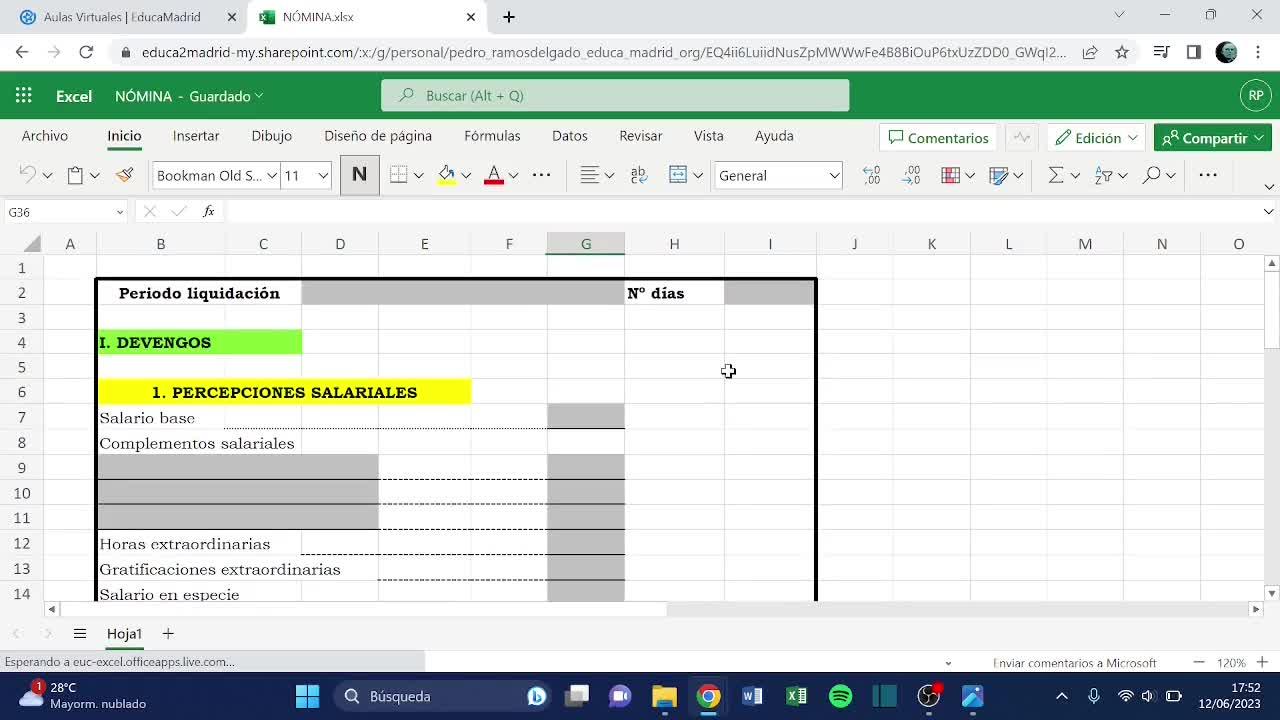 Cuando le deis a intro podéis ver cómo se va autocompletando la totalidad de percepciones salariales