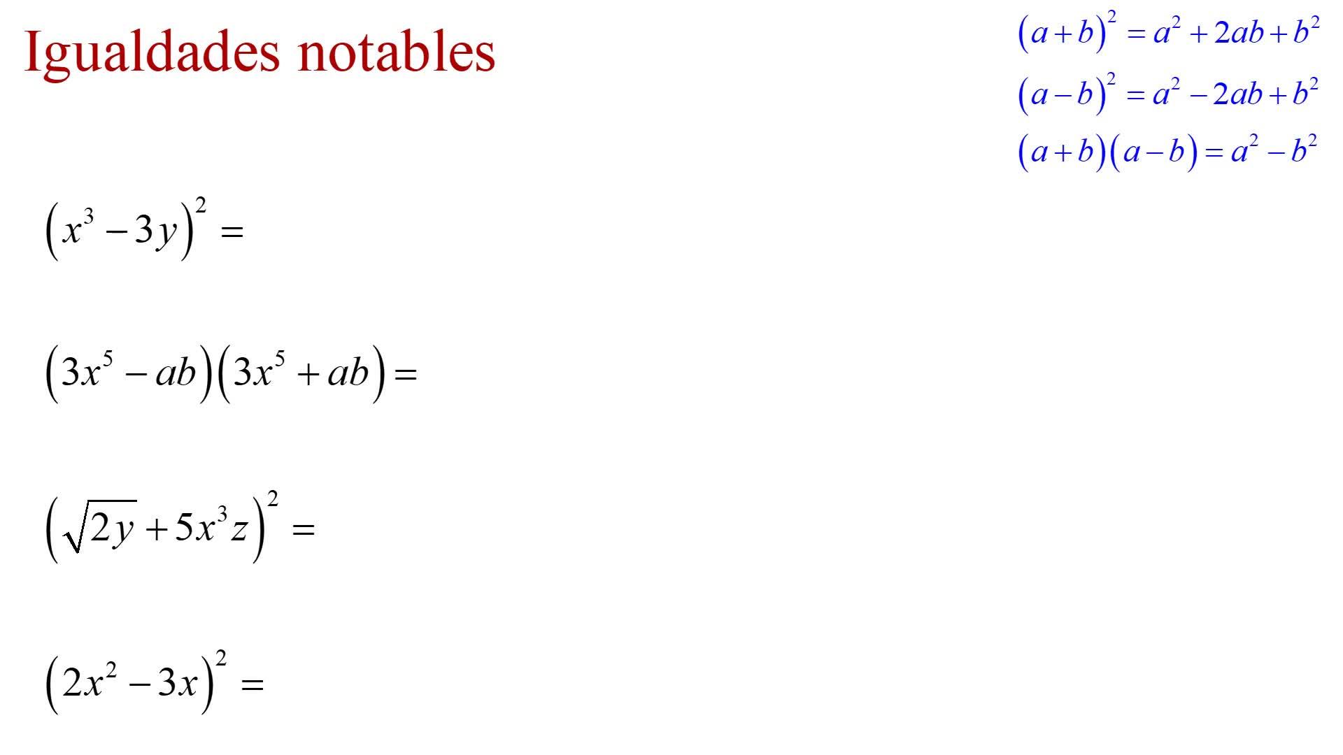 Ejemplos más complicados de igualdades notables