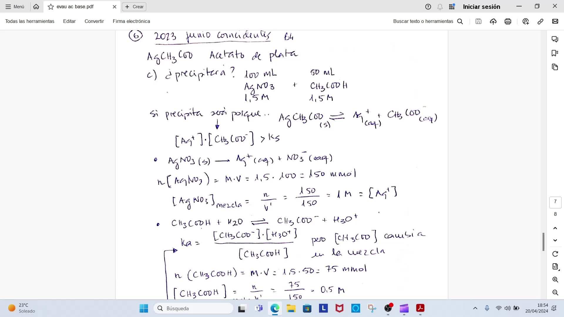 El ejercicio de 4 de 2023, junio, coincidentes, el enunciado, bueno, el apartado A y B están en el bloque de equilibrio de precipitación, que está hecho este ejercicio en los ejercicios de precipitación,