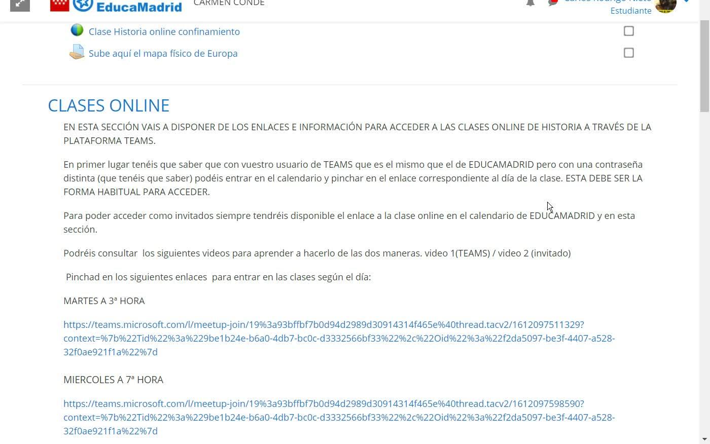 Como entra en las clases online de Historia como invitada - Contenido educativo