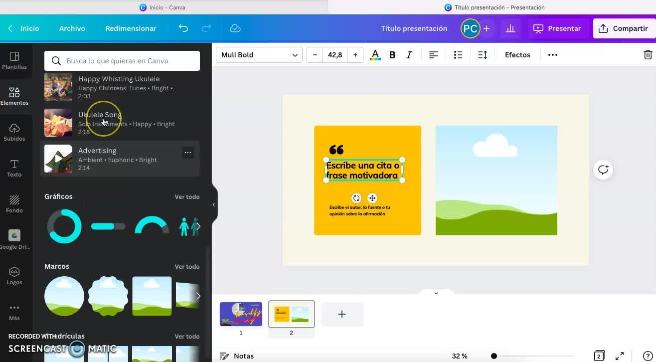Bien, retomamos la creación de nuestras presentaciones con Canva.