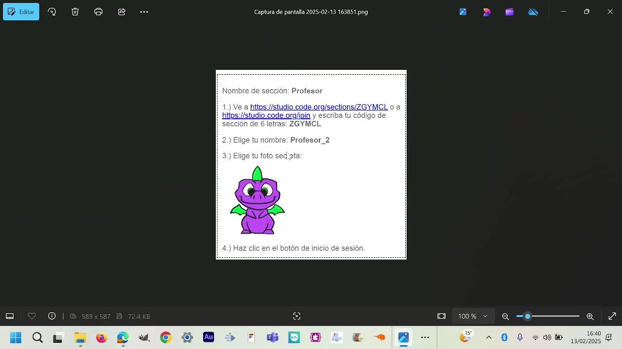 Si vas a code.org, iniciar sesión, entras en tu clase, en tu aula, metiendo este código de seis letras.