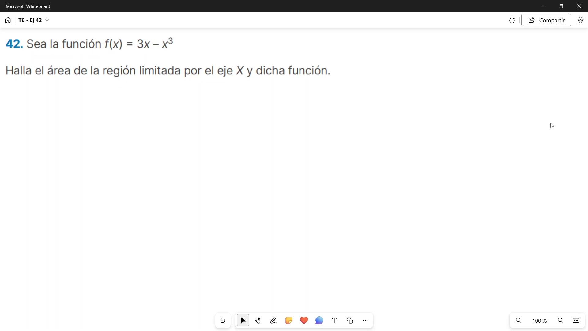y me piden calcular el área de la región limitada por el eje x y dicha función.