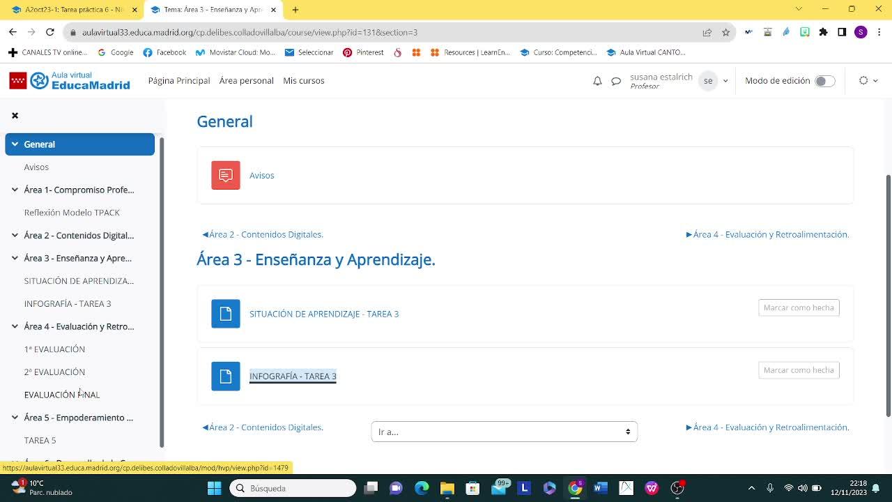 Para ello vamos a ir en primer lugar al área 3 y allí vamos a clicar en infografía, tarea 3.